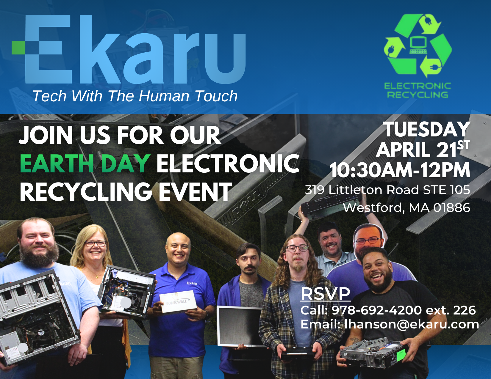 Join Ekaru for our quarterly Electronic Recycling event happening just in time for Earth Day! Tuesday April 21st from 10:30am-12:00pm ET.