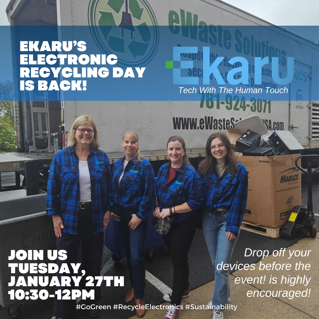 This event is open for all clients and those needing to throw away electronics sustainably to free up space. If you would like to participate, reach out to us at 978-692-4200 or email info@ekaru.com to RSVP today!